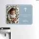 An elegant Baptism dusty blue design that you can customise with your details and photo.