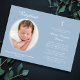 Elegant Baptism Religious Cross Photo Dusty Blue Invitation