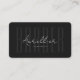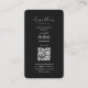 Modern Elegant Barber Barbershop Black White Script business card with QR code