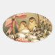 ELEGANT BASKET ,CHICKENS,FLOWERS AND EASTER EGGS OVAL STICKER