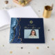 Elegant navy blue agate decorates the side of this modern Bat Mitzvah or Bar Mitzvah party guest book with gold foil script. Your son or daughter's name is written in beautiful formal script under the Star of David. Add their photo for a personalised touch. Perfect for a chic, stylish Jewish celebration.