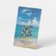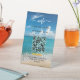 Personalized elegant beach background welcome sign with script typography for a rental property, Airbnb, apartment, vacation lodge, cabin, or b&b. Edit the text to add any custom text you'd like to include for the arrival info, house rules, wifi, check-out, and additional information for your guests. Features the name of the place, address, contact number, and email and review request at the bottom.