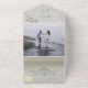 Simple, elegant, modern calligraphy, tropical beach wedding invitation with picture, ocean pattern and faux gold details.