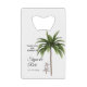 Say thank you to your guests with this Elegant Beach Wedding Palm Tree Thank You Favour Credit Card Bottle Opener. You can customise the white background to any colour you wish. Each is designed with a pretty palm tree and two starfish on the right front side. Personalised with bride and groom name and the established date. The text is "Thank you for joining us" in black simple modern lettering.