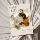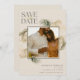 Announce your beachside celebration with our Elegant Beach Wedding Photo Save the Date! This stunning design frames your favourite engagement photo with a lush tropical leaf border, creating the perfect blend of natural beauty and sophistication. The elegant fonts add a touch of refinement, making this Save the Date ideal for couples planning a destination or coastal wedding.