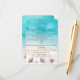 A sophisticated beach wedding design featuring watercolor seashells and pearls on a clean white background. Elegant script and classic serif fonts create a timeless look, perfect for a coastal, destination, or nautical-themed wedding. The soft pastel tones evoke a romantic and serene ocean atmosphere.