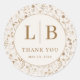 This Classic Round Sticker features an elegant design with a beige background adorned by a repeating pattern of muted earth-toned botanical illustrations, including delicate flowers and leaves. The central circle is outlined in thin gold, framing the initials "L | B" and the phrase "THANK YOU" in a sophisticated serif font, also in gold. The overall style exudes vintage charm and sophistication, perfect for expressing gratitude at formal events or celebrations. The intricate floral motifs create a warm, polished atmosphere, making this sticker ideal for personalizing gifts or acknowledging special moments.