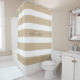 Brighten up your bathroom with this new elegant beige brown and white striped shower curtain. It is designed with wide horizontal stripes and customized with family's last name in trendy hand writing lettering on the center. Click personalize template option and enter name.
