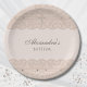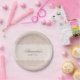 Personalize this Christian baptism paper plate for your special, faith-filled celebration. The design features a delicate cross in elegant soft beige pearl graphics, beautifully accented with beige lace and pearl graphic details against a soft pink beige background. Perfect for a minimalist christening, simple baby dedication, or baptism with a vintage look, this design combines timeless charm with modern simplicity. The mocha brown colored typography and graceful script font add a refined touch, making these paper plates a lovely addition to your event décor. Be sure to see the collection for matching items to complete your coordinated look.