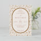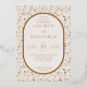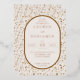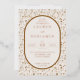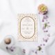 This elegant wedding invitation features a symmetrical layout with a large oval frame at the centre, bordered by delicate floral motifs in muted beige tones on a light cream background. The design combines classic serif fonts with bold script typography to highlight key details, creating a sophisticated and modern aesthetic. Gold accents add a touch of luxury, while the overall colour palette evokes warmth and celebration. Perfect for formal weddings, this invitation sets the tone for an unforgettable event.