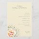 This wedding program features a minimalist layout with ample negative space, creating an elegant and clean aesthetic. The soft beige background complements the watercolor-style floral illustration of a peach-colored rose surrounded by delicate white flowers and green foliage, adding a romantic touch. Serif fonts are used throughout for a classic feel, with customizable sections for ceremony details, ensuring a personalized experience. The design exudes sophistication and warmth, perfect for celebrating a special day in Naples, FL.