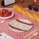 Elegant Beige Red White Christmas Snowflake Design Paper Plate