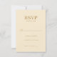 This elegant wedding RSVP card features a minimalist design with a soft beige background and dark brown text, creating a classic and sophisticated look. The layout is clean and organised, with bold serif typography for the "RSVP" heading and a decorative cursive initial "M" adding a touch of refinement. The customisable sections allow guests to indicate their attendance with options like "Joyfully Accepts" or "Regretfully Declines," while the simple line for the number attending ensures clarity. Perfect for formal events, this card conveys an atmosphere of formality and anticipation, making it ideal for weddings and other significant celebrations.
