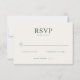 This elegant wedding RSVP card features a minimalist design with a clean, off-white background and a sophisticated color palette of muted grays and blacks. The layout is simple yet refined, with bold serif typography for the "RSVP" heading and clear sans-serif fonts for response options, creating an inviting and modern aesthetic. Customizable fields allow for personalization, making it perfect for formal occasions that celebrate understated sophistication and clarity.