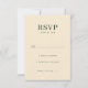 This elegant RSVP card features a minimalist design with a soft beige background, creating a refined and inviting atmosphere. The layout is clean and vertically oriented, with bold serif typography for the "RSVP" header and a cursive script placeholder for personalization. Two simple options for acceptance or decline are presented in a contrasting sans-serif font, ensuring clarity and ease of use. Perfect for formal events, this card combines sophistication with functionality, making it an ideal choice for weddings or upscale gatherings.