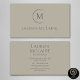 This minimalist business card features a soft taupe-beige palette with refined circle monogram detailing and professional text placement. Designed for modern brands and elevated personal use, it offers a calm, polished presence with clean typography and balanced spacing. Ideal for entrepreneurs, creatives, and professionals seeking a timeless card that communicates confidence, clarity, and understated sophistication. Suitable for consultants, accountants, real estate professionals, designers, attorneys, and other client-facing roles.