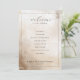This elegant wedding program features a soft, watercolor-like background in shades of beige and light brown, creating a warm and inviting atmosphere. The layout is centred with ample negative space, emphasising clarity and simplicity. It includes a mix of cursive and serif typography to guide the reader through the ceremony details, from the processional to the recessional. The design's classic and sophisticated style blends traditional elements with modern minimalism, making it perfect for a formal celebration.