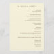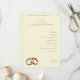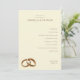 This wedding program features a minimalist and elegant design with a warm beige background, creating an inviting atmosphere. The layout is structured with a hierarchical arrangement of text in a classic serif font, highlighting the ceremony details such as "Exchange of Vows" and "Unity Ceremony." Gold rings are subtly illustrated at the bottom left, adding a symbolic touch to the understated aesthetic. Perfect for couples seeking a serene and sophisticated look, this design emphasizes clarity and simplicity, making it ideal for formal weddings.