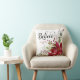 This elegant "Believe" Christmas pillow features a beautiful red floral design with the word "Believe" in modern typography script. Personalise it with your name and date.