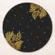 Elegant Birthday Gold Foliage Party Paper Coaster. An elegant gold foliage on a black background.