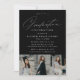 Invite guests to celebrate the grad with our elegant photo graduation party invites! The design features a modern calligraphy script with your graduation party details displayed in white lettering against a black background. The unique graduation party invites feature three photos in a row at the bottom of the design. The multi-photo graduation invite reverses to display a simple black and white diagonal stripe pattern.