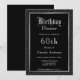 A fully customisable elegant black-faced black white framed sophisticated 60th birthday dinner invitation featuring a tailored diagonally striped outer frame.