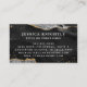 Modern, stylish professional business card with black agate geode and faux gold glitter sparkle accents personalised with chic, elegant calligraphy  monogram initials and name. CHANGES:  Change the text font style, colour, size and placement by clicking on EDIT under the PERSONALIZE section. ASSISTANCE:  For help with design modification or personalisation, colour change, resizing, transferring the design to another product or if you would like coordinating items, contact the designer BEFORE ORDERING via the Zazzle Chat MESSAGE tab below or email makeitaboutyoustore@gmail.com.