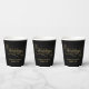 Wedding paper cups featuring an elegant black and faux gold foil design.