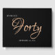 This 40th birthday guest book design is very elegant thanks to the striking golden script lettering against the classic black background. You can personalise the cover by adding the birthday girl's name and the date of her party. Our custom guest books are a wonderful way for friends and loved ones to share their best wishes and memories. These are the words that you will read through and treasure long after the party is over. Original Design Clare Swindlehurst (c)