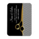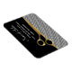 Attract new clients and customers with this fashionable hair salon business card magnet for professional hair stylist with a modern and trendy black and white chevron pattern and embellished with a pair of chic gold hair cutting scissors. This elegant and stylish magnetic business card can be personalised by adding the name of the hair salon or beauty boutique. The gold gradient is a printed image, not metallic.