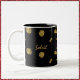 Beautiful black mug decorated with gold spangles. Add your name to personalise.