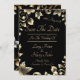 This elegant black wedding invitation set features luxurious floral designs in gold and silver. The intricate metallic flowers and leaves create a sophisticated and timeless look, ideal for formal and evening weddings. The deep black background enhances the rich details, making it a perfect choice for couples looking for a classic and refined invitation suite.