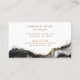Make a bold and sophisticated statement with this stunning business card. The dramatic black background is accented with a shimmering gold glitter agate pattern, creating a luxurious and eye-catching design. Your name and services are elegantly displayed in a warm copper hue, ensuring a lasting impression on potential clients. Perfect for hair stylists, makeup artists, and other beauty professionals who want to showcase their style and expertise.