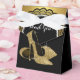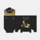 Elegant black and gold glitter high heel shoe favour boxes. You can add text to the front and back of this beautiful black and gold party favour box and choose your background and ribbon colour. This beautiful black and gold high heel shoe favour box is great for a womans 50th birthday party. The text reads "Thank You!" on the front and "for being a part of my special day!" under the top flap. You can change or delete the message and choose your font style.