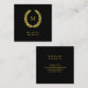 Elegant Black and Gold Laurel Wreath with Monogram Square Business Card
