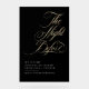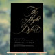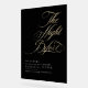 This beautiful rehearsal dinner welcome sign, featuring elegant calligraphy that reads "The Night Before," sets a romantic and heartfelt tone for the evening. Its bold design immediately draws guests into the excitement of the upcoming wedding, just one day away. Designed on sleek, black glossy acrylic, the sign perfectly reflects the couple's sophisticated and unique style. The deep black surface exudes modern elegance, while the crisp white and gold typography creates a beautiful contrast that grabs attention with ease. Whether placed at the entrance or within the event, this delightful and minimalist rehearsal dinner welcome sign sets the stage for a wedding that is both sophisticated and unforgettable.