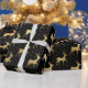 Elegant Black and Gold Script Christmas Reindeer Wrapping Paper