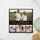 Elegant Black and Gold "Love and thanks" Script 4 Photo Collage Wedding Thank You Card. Stylish, modern, minimalist wedding thank you card template featuring four (4) photo on the front and one (1) photo on the back. With the text "Love and thanks" in a swirly hand lettered typography swash-tail font in gold on black colour background. Personalise the custom name and thank you message. If you prefer to handwrite your note, delete the sample text to make more space. If You need help or matching item, please feel free to contact to designer!