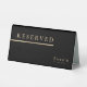 Make a memorable impression with our Elegant Black and Gold Shiny Typography Reserved Table Tent Sign. This timeless elegant design features a simple minimal typography over a deep black background. It will definitely elevate the dining experience of your customers.