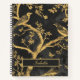 Stay organised in style with this elegant spiral notebook, featuring a luxurious gold on black design of birds on a tree. The sophisticated colour contrast and intricate detailing make this notebook both functional and beautiful, perfect for jotting down thoughts, notes, or sketches. Easily customise with your name in pretty script calligraphy. Also makes a beautiful personalised gift for birthdays, Christmas and all occasions.
