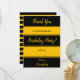 This elegant black and gold Birthday Thank You Card is perfect for a modern Birthday. The simple design features sleek black-and-gold calligraphy on a black-and-gold striped background.