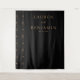 This is a sophisticated style image featuring an elegant black wedding invitation adorned with intricate gold patterns along the left side. The names "Lauren and Benjamin" are prominently displayed in a classic, serif font, followed by their special date, "May 23, 2026," adding a touch of timeless elegance. The combination of deep black and luxurious gold creates a mood that is both formal and inviting, perfect for setting the tone for a grand celebration. It inspires feelings of anticipation and joy, making it ideal for marking a significant milestone.