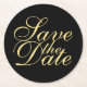 Elegant Black and Gold Wedding Save the Date Round Paper Coaster