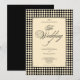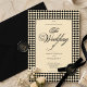 This sophisticated old money style wedding invitation exudes timeless charm in black and ivory. The striking harlequin pattern creates a bold statement, while the elegant typography, including a beautiful script for 'The Wedding,' ensures a classic and refined look. Perfect for grand celebrations, this invitation sets the tone for an unforgettable event. Announce your marriage with a design that is both grand and utterly chic, reflecting your discerning taste.