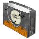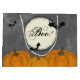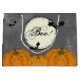 A Halloween gift bag with a vintage-inspired design featuring pumpkins, bats, and a glowing moon with the word Boo! — perfect for wrapping Halloween party favours, candy, or seasonal gifts.