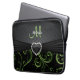 Elegant Black and Peridot Green Floral Pattern Laptop Sleeve