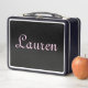 Black and pink make a great contrast on this lunch box. Throw in a fancy font, and it turns into something even more special. Customisable. Original work; (c) Sharon Lee Hudson. All rights reserved.