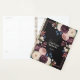 This sophisticated design showcases a stunning floral arrangement with rich plum, blush, cream, and navy blooms, framed by delicate foliage on a sleek black background. The personalised name and year add a refined touch, making it perfect for professionals, students, or anyone who loves timeless elegance. Ideal for organising tasks, journalling, or planning with a luxurious aesthetic. A perfect combination of bold colours and classic style to elevate your daily organisation.