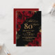Elegant Black and Red Roses Floral 80th Birthday Invitation