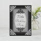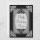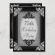 Womens' or mens' personalised custom 75th birthday party celebration invitations. Beautiful, ornate black and silver double sided woman's or man's formal invites for seventy five year old / 75 years old birthday parties. Decorated on the back with classy, glamourous printed black lace and pearls mat images for your text details. Chic, classy, stylish invitations with trendy, fashionable colours. These sophisticated, pretty invites are decorated / printed on both sides. PLEASE NOTE: All invitations on Zazzle have flat printed images. Original artwork©delightful-doodles.com. Pearl mat by ©Hazel Kinvig-Paul www.design-a-dream.co.uk. If you need any assistance customising your product please contact me through my store and I will be happy to help.